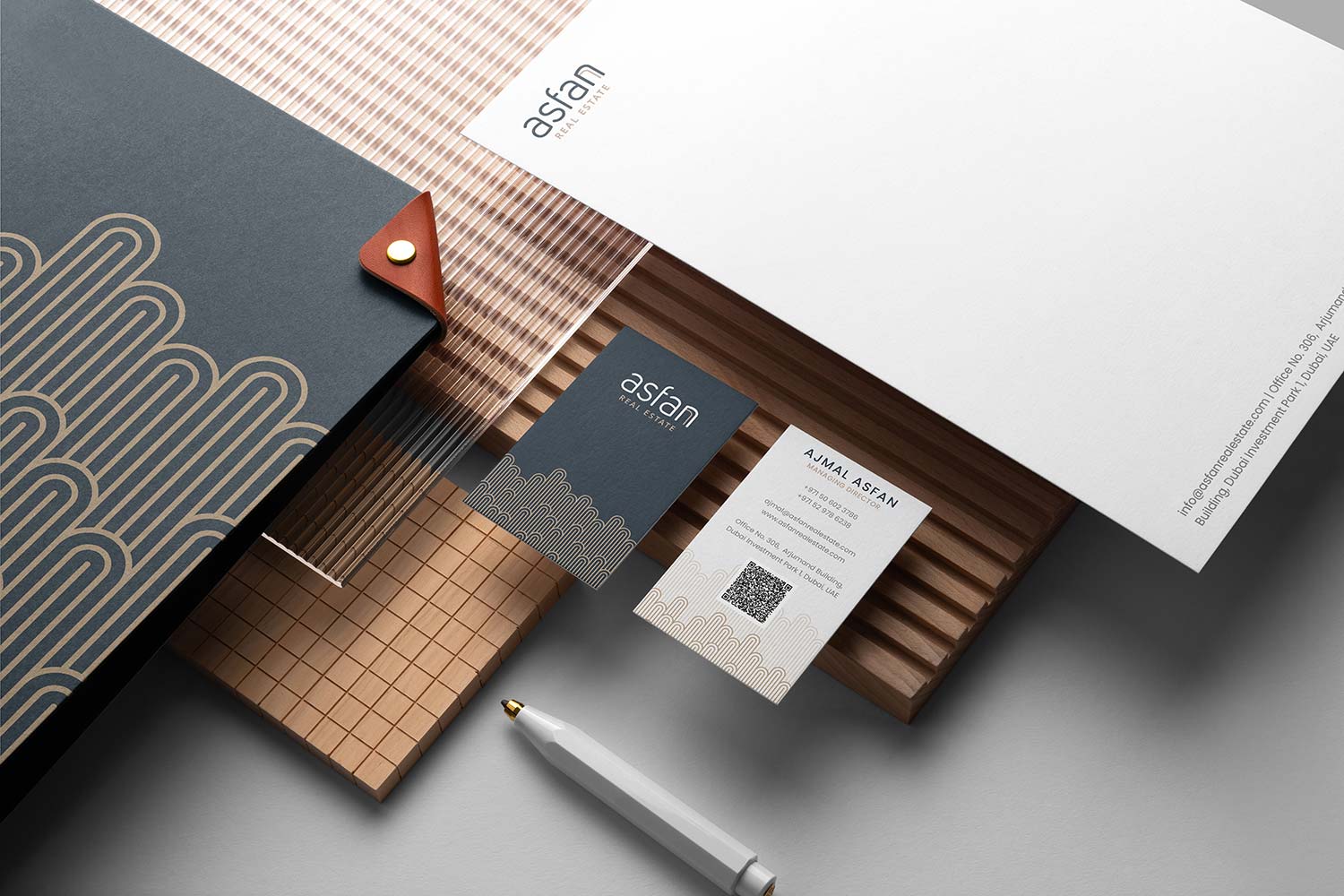 This encompasses the creation of a visually striking logo that artfully incorporates the signature Arc pattern, all while delving into the intricate challenge of designing an engaging website. This digital platform must authentically mirror Asfan Real Estate’s unwavering commitment to excellence and innovation, providing an immersive experience for visitors.